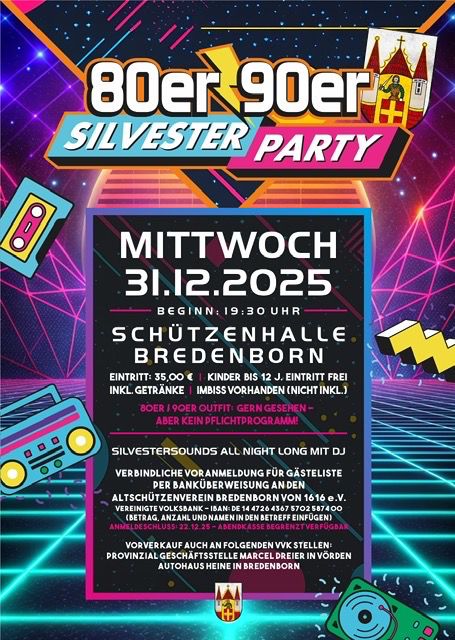 Silvesterparty in der Schützenhalle Bredenborn – Mittwoch, 31. Dezember 2025, ab 19:30 Uhr
