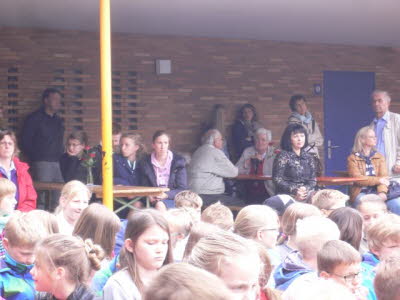Für all diese Arbeit möchte ich allen aktiven wie auch ehemaligen Lehrpersonen, und auch besonders Frau Roswitha Hüllwegen, die 31 Jahre als Sekretärin und guter Geist der Schule zur Seite gestanden hat und Herrn Hermann Potthast für seine langjährige Hausmeistertätigkeit meinen herzlichen Dank aussprechen. Den nachdrücklichsten Dank erfahren Sie liebe anwesenden Lehrerinnen und Lehrer jedoch dann, wenn sie auf Schülerinnen und Schüler treffen, die sie einst unterrichtet haben und sie Ihnen voller Stolz erzählen, was aus den kleinen Jungen und Mädchen jetzt geworden ist.